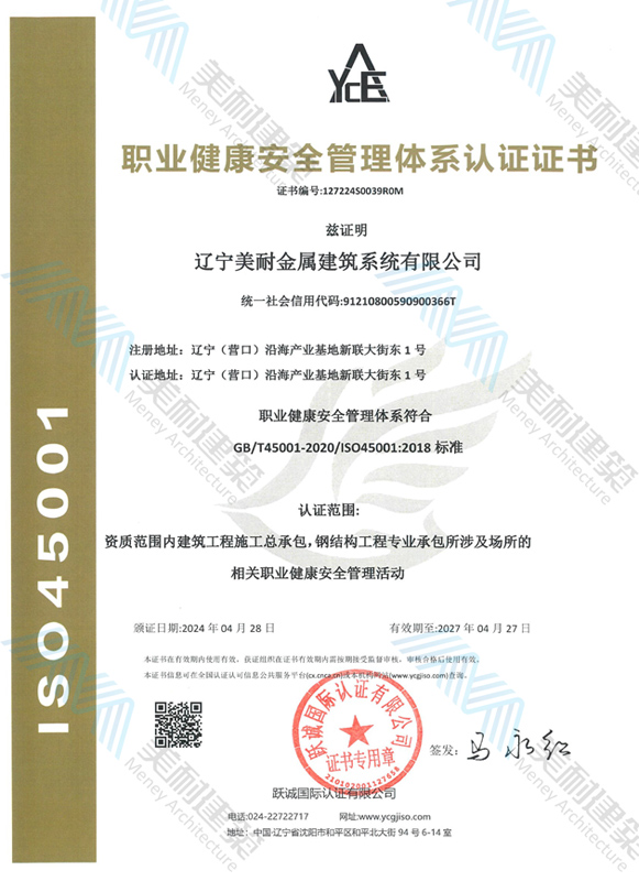 遼寧美耐金屬建筑系統(tǒng)有限公司位于遼寧(營口)沿海產(chǎn)業(yè)基地,專注于預制金屬建筑系統(tǒng)領域,是一家集工業(yè)建筑設計、制作、施工及相關的技術(shù)咨詢與服務為一體的綜合性服務企業(yè)。作為國家鋼結(jié)構(gòu)協(xié)會會員、中國建筑金屬結(jié)構(gòu)協(xié)會會員單位與國家高新技術(shù)企業(yè),美耐建筑集建筑工程施工總承包、鋼結(jié)構(gòu)工程專業(yè)承包等多種資質(zhì)于一身,并擁有22項鋼結(jié)構(gòu)建筑領域?qū)@?項軟件著作權(quán)。